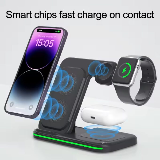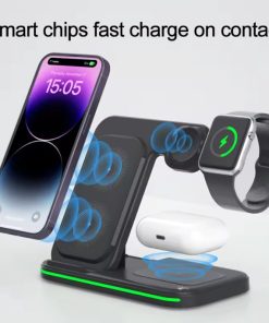 This sleek and compact charger is designed to provide fast and convenient charging for your iPhone 14, Apple Watch, and wireless earphones. With its foldable design, it offers versatility and portability, making it ideal for use at home, in the office, or while traveling.