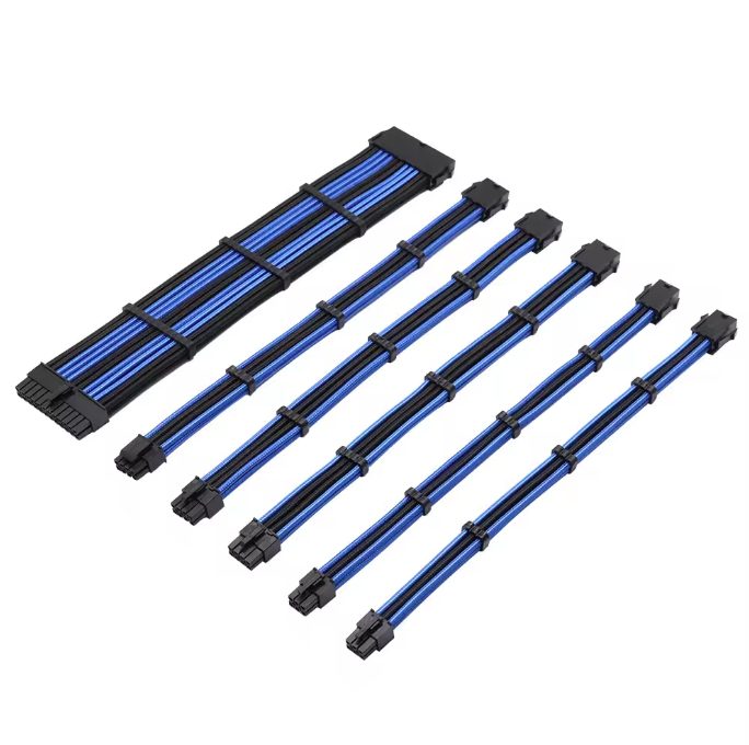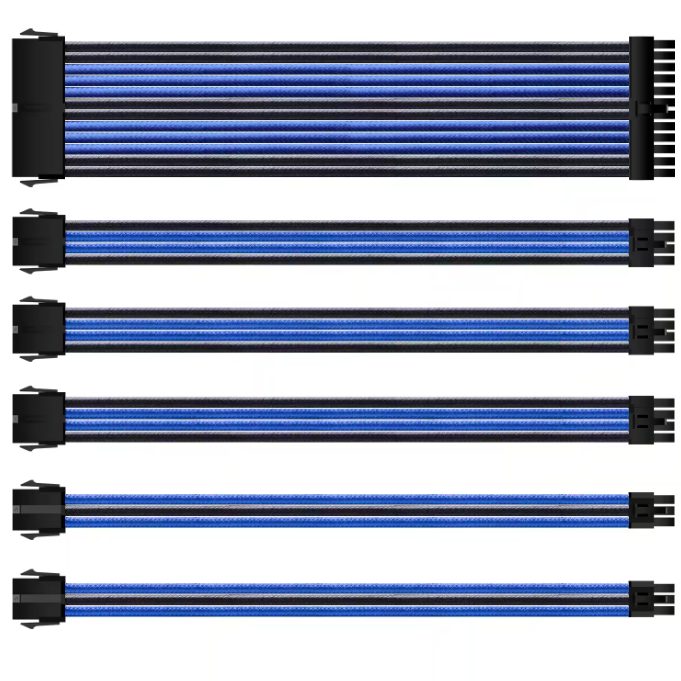 Black and Blue ATX Computer Cable Sleeved Extension Power Supply Cable Computer Accessories