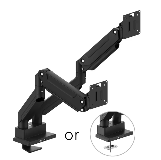 classy factory monitor arm Heavy Duty 15kgs double LED LCD computer Support bracket with USB table stand Clamping and Grommet