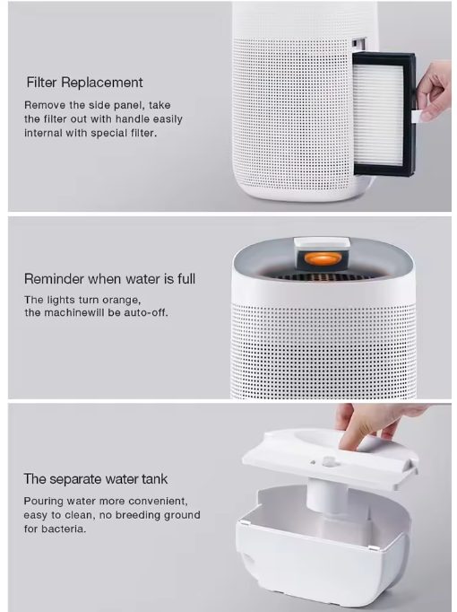 With built-in WiFi connectivity and compatibility with the Tuya smart home platform, you can easily connect the dehumidifier to your home WiFi network and control it remotely using the Tuya smartphone app. This allows you to adjust settings, monitor humidity levels, and schedule operation times from the convenience of your smartphone, whether you’re at home or on the go.